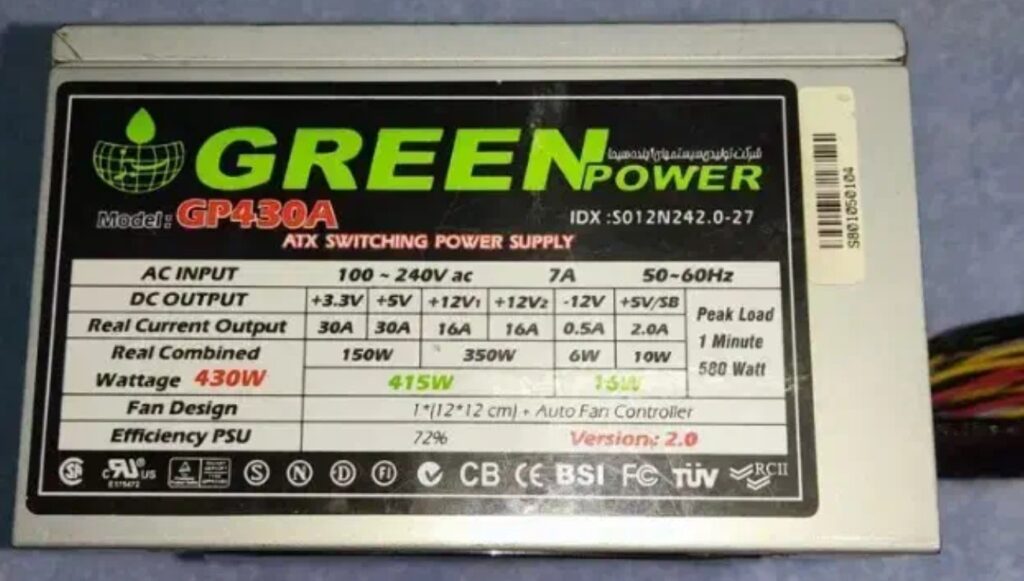 پاور430 وات گرین مدل GREEN GP430A تمیز و تست‌شده با گارانتی ۱ ساله